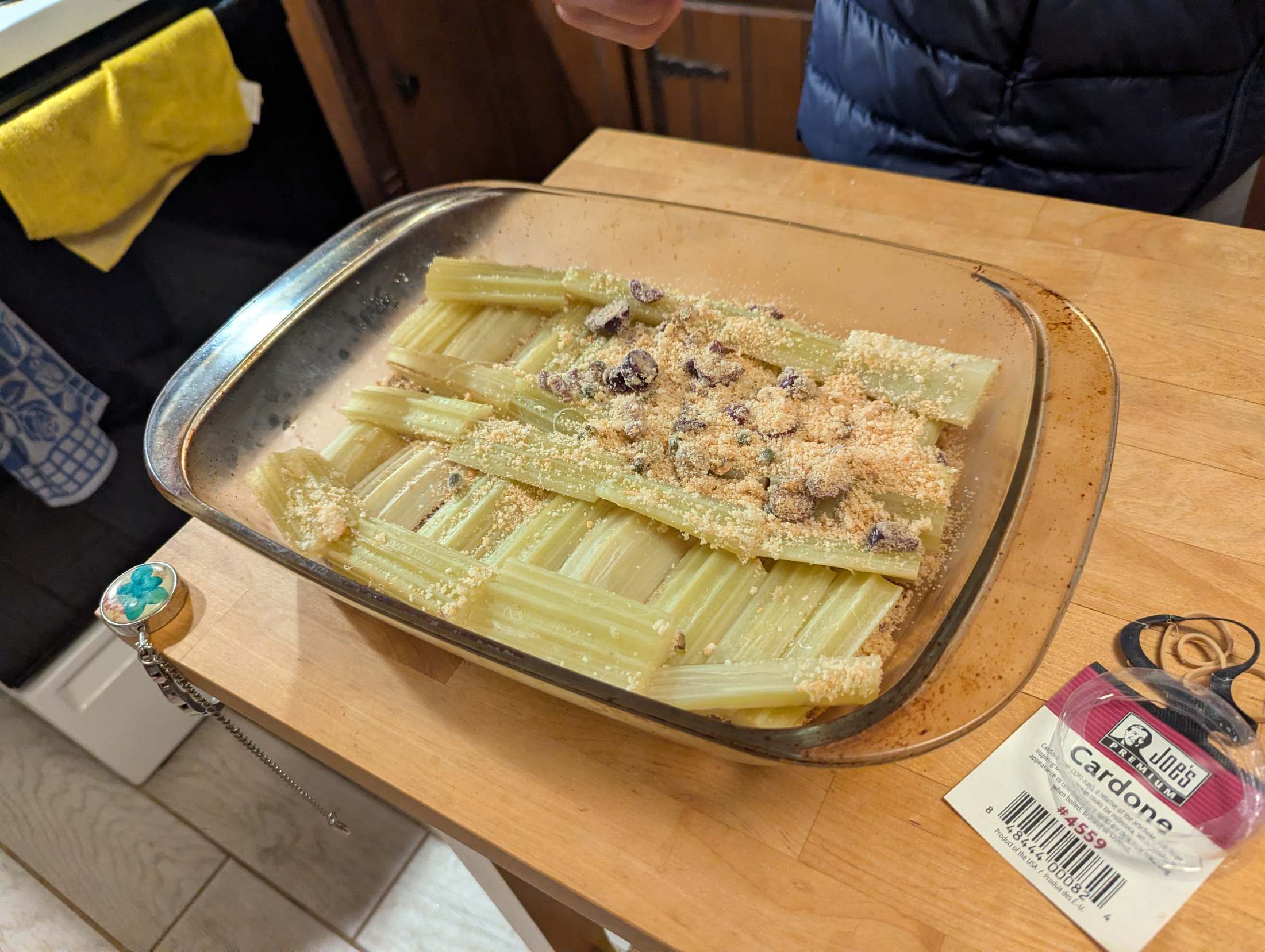 我們選的食譜是 Cardoon, Olive and Pine Nut Gratin