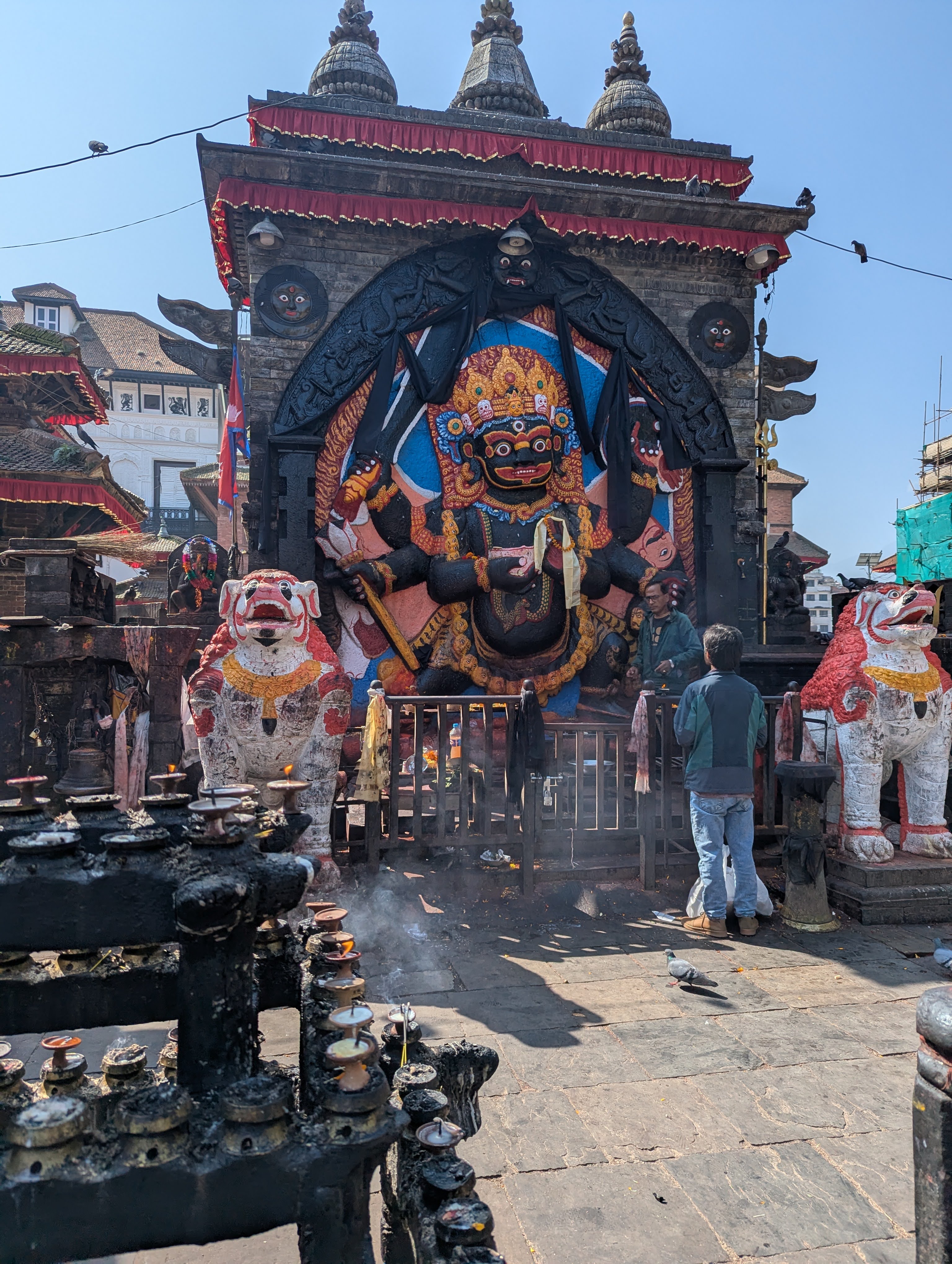 導遊在講到這邊的時候特別提到神像面帶笑容,為什麼會笑呢?導遊講了個故事,在尼泊爾腔華語裡面,我只能聽個大概,沒辦法記得細節。所以時代啊人名什麼的一概不知道。